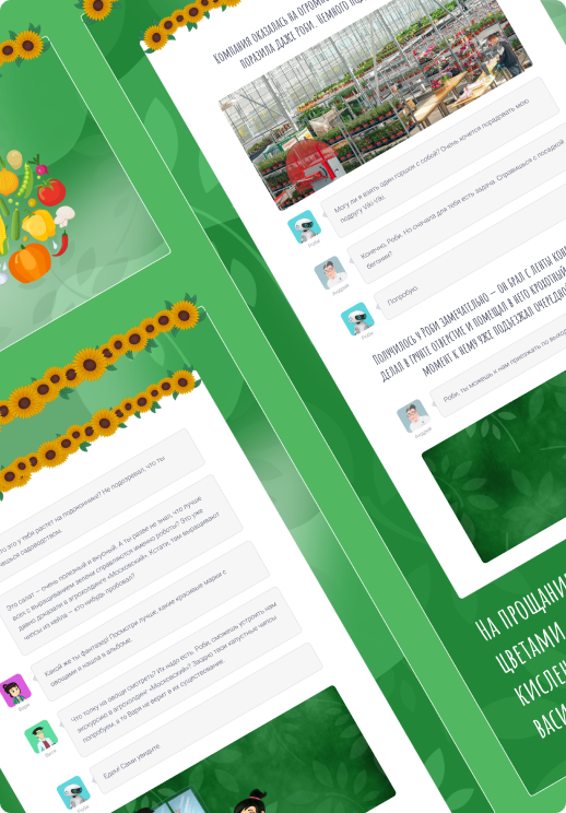 Прежде чем приступить к работе, изучили множество проектов на Behance. Вдохновившись, собрали макет с упором на современные тренды в оформлении детского контента. Так в проекте появились анимированные герои, уникальный дизайн каждого этапа-главы, «детские» цвета, яркие иллюстрации, часть из которых специально для проекта рисовал художник.